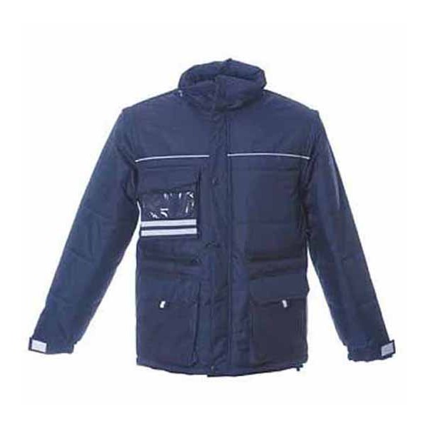 GIUBBOTTO AMERICA NAVY - MANICHE STACCABILI - POLIESTERE SPALMATO IN PVC - IMBOTTITO IN POLIESTERE CON FODERA IN POLIESTERE - TESSUTO ESTERNO ANTISTRAPPO, TRASPIRANTE, IMPERMEABILE - TASCA SUL PETTO CON PORTABADGE A SCOMPARSA - DUE TASCHE ESTERNE CON ZIP - UNA TASCA INTERNA - DUE TASCHE CON PATTA E VELCRO - CAPPUCCIO ESTRAIBILE DA COLLETTO - TAGLIA - M - L - XL - XXL - 3XL