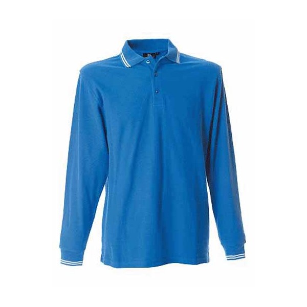 PIPING BIANCO SU COLLETTO E FONDO MANICA - NASTRO DI RINFORZO INTERNO COLLO - COLORE BLU RESISTENTE AI LAVAGGI - RESTRINGIMENTO COTONE MENO DEL 5% A RIPETUTI LAVAGGI A 60° - TAGLIA - S - M - L - XL - XXL - 3XL - VENDIBILE SINGOLARMENTE